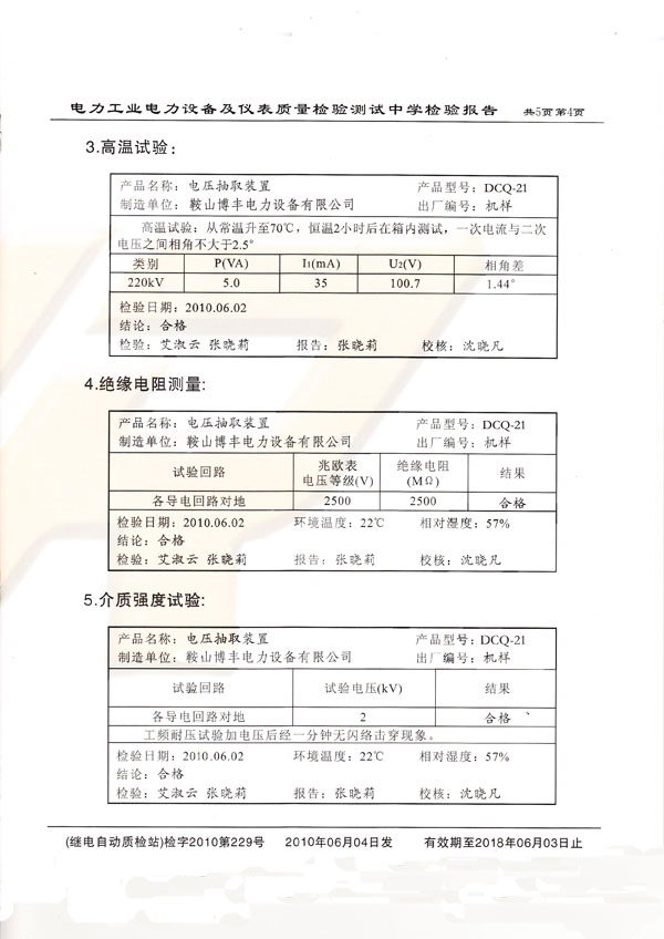 國網(wǎng)黑龍江省電力公司500kvA馮屯變電站維護檢修時更換了8臺由我司生產(chǎn)的DCQ~21型電壓抽取裝置(專利產(chǎn)品)。