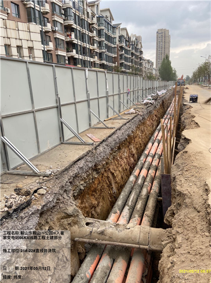 本工程途經(jīng)遼寧省鞍山市鐵東城區(qū)內(nèi),路徑長度3.89km, 其中,新建電纜排管3.59km, 鉆越鞍鋼鐵路處新建頂管長度0.1km,鉆越公路2處新建頂管長度共0.2km, 按四回路敷設(shè)。